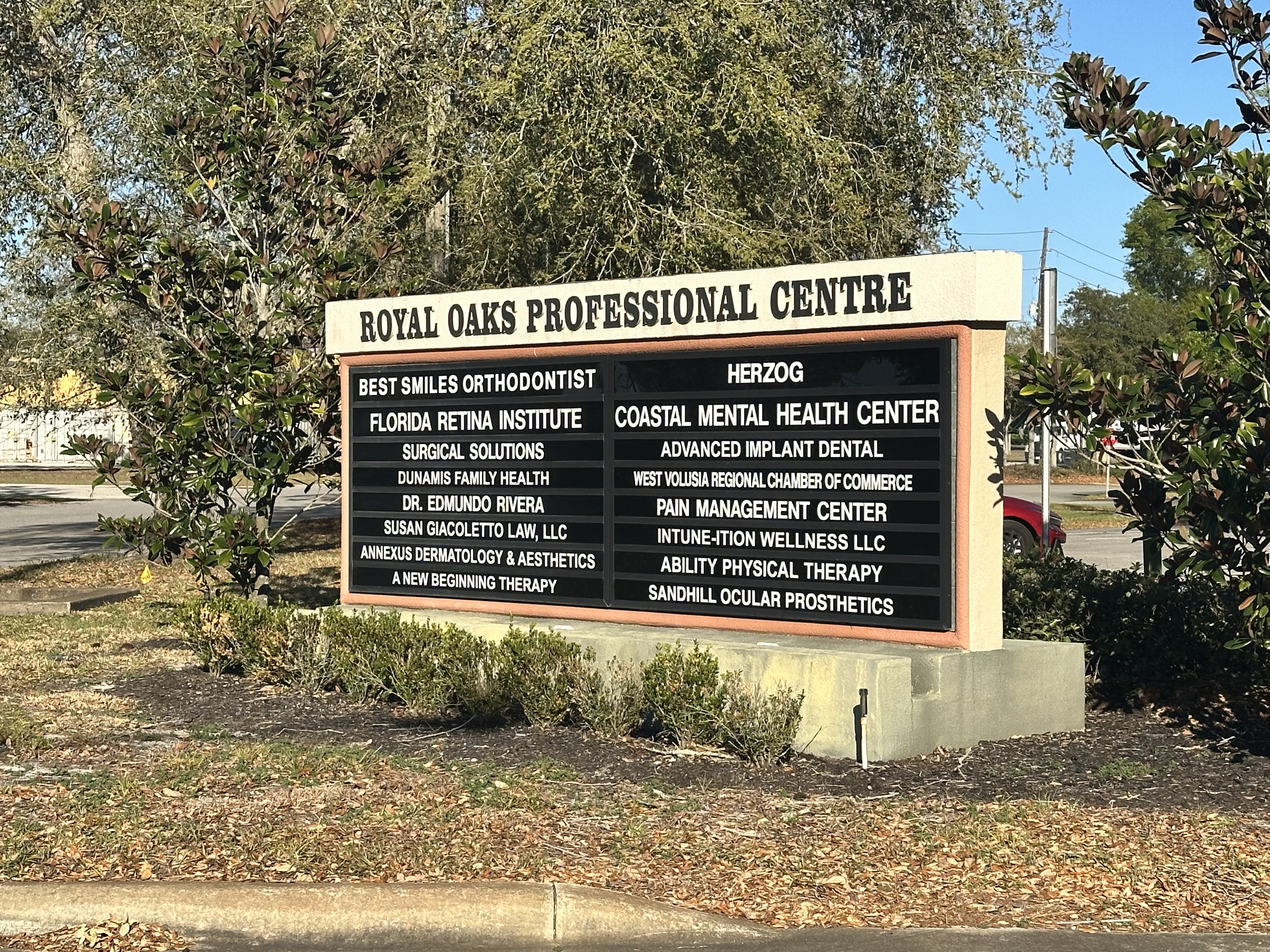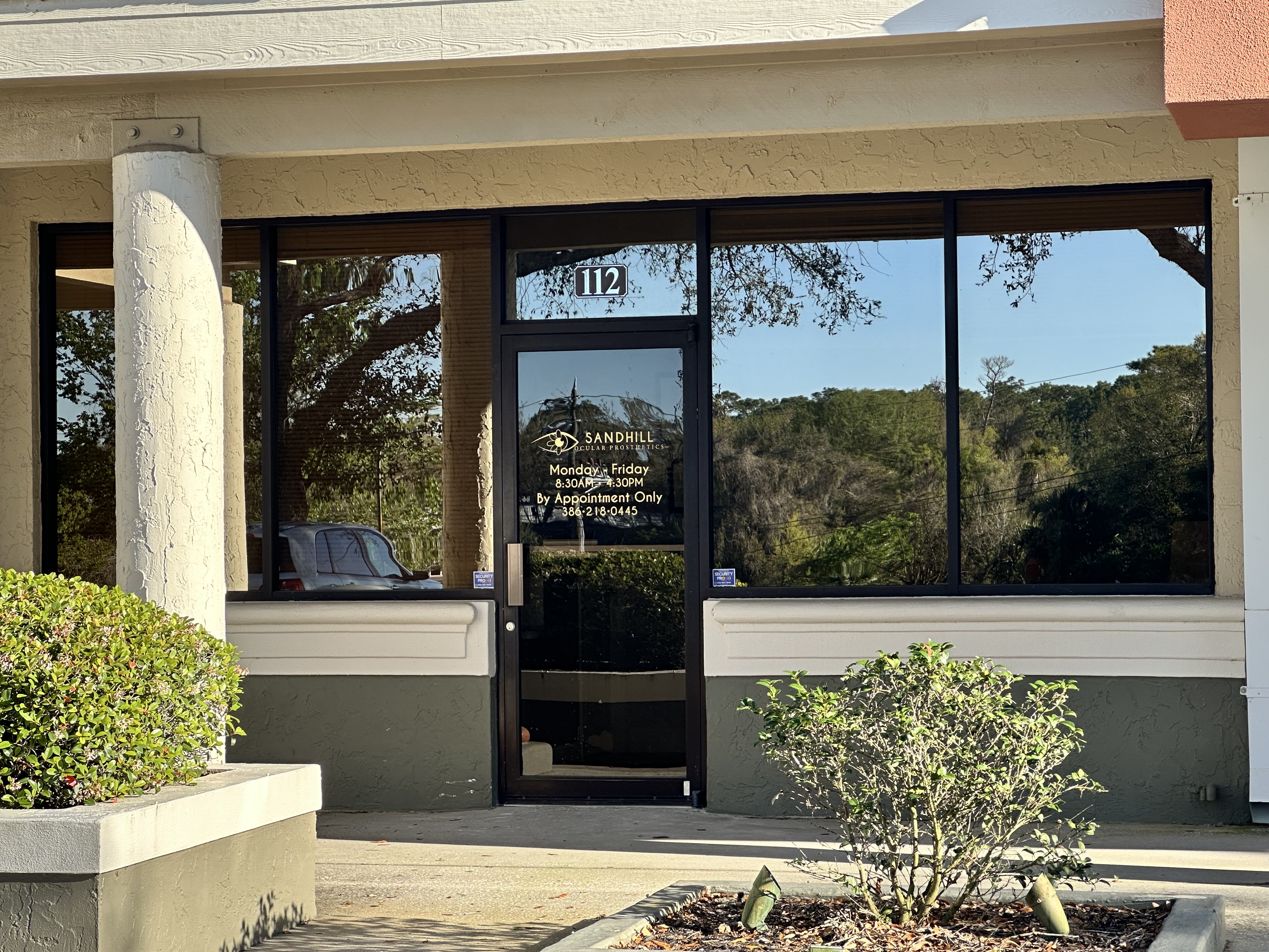 Sandhill Ocular Prosthetics LLC is in Building 1 of the Royal Oaks Professional Centre at 112 Treemonte Drive. There is plenty of parking available.